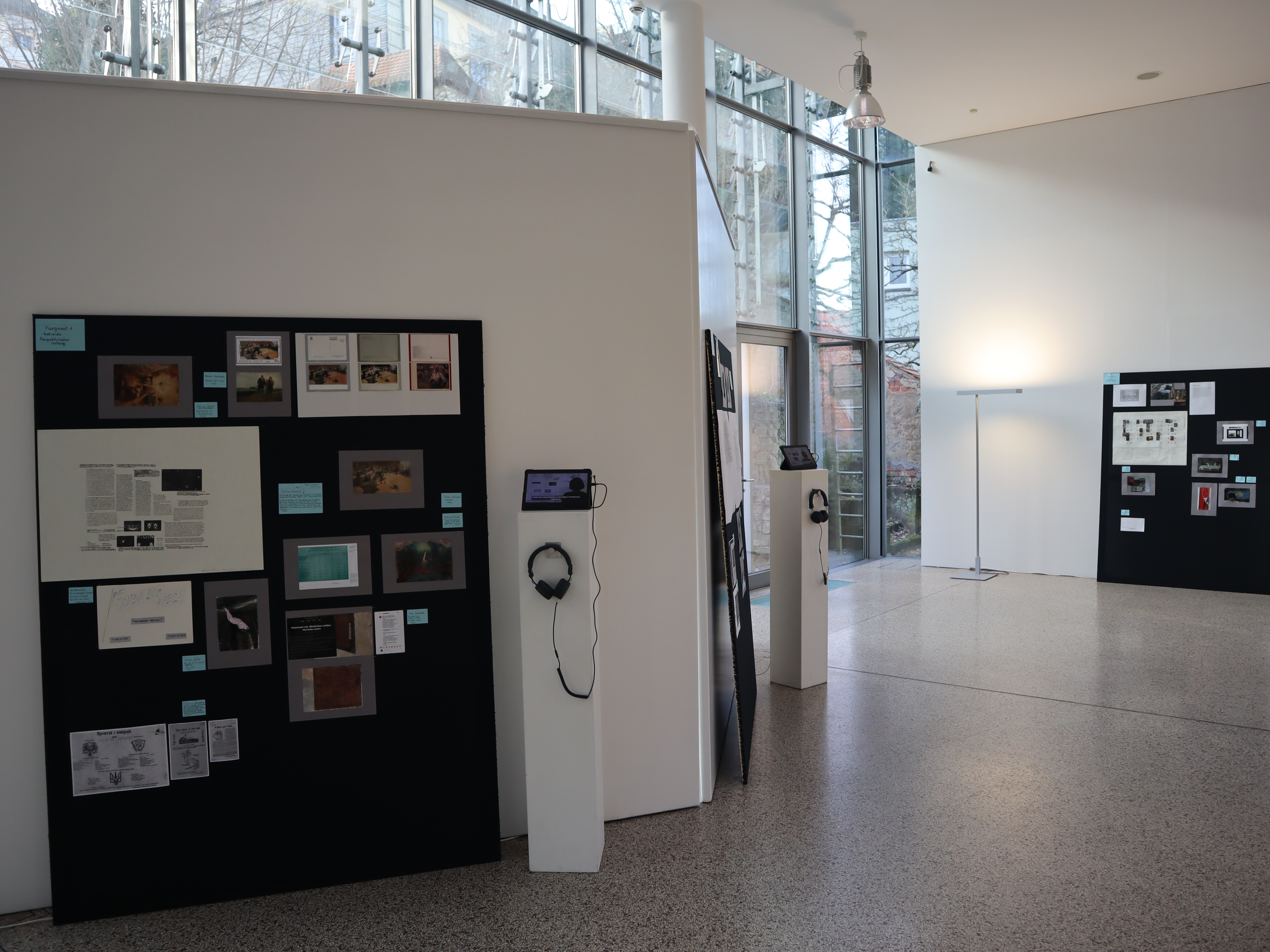 Curtain of Caution, 2023, instaliation, 2023. Gdansk, and Orunia. In 2022, tapes creatig geometric patterns on the panes of Ukrainian windows became one of the symbols of the war. Pasted to prevent extensive scattering of glass eluring a blast, thay reminded us about the daily struggles of millions of Ukrains. Curtain of Caution transfers these patterns from the window onto the fabric used to cover it. In just a moment, you can remove the curtain from sight and reveal the pristine windows pape. In a cauntry that is not waging a war, we return to an undesturbed view of a tranquilstrat.